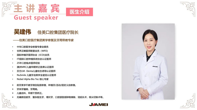 佳美口腔始建于1993年,是中國第一家連鎖經(jīng)營的大型現(xiàn)代化口腔醫(yī)療機(jī)構(gòu)。佳美口腔采用世界口腔醫(yī)療前沿技術(shù),擁有系列自主知識(shí)產(chǎn)權(quán)和國內(nèi)高水平的口腔醫(yī)療專家醫(yī)療隊(duì)伍和專家級(jí)的運(yùn)營管理團(tuán)隊(duì),突破了國內(nèi)傳統(tǒng)醫(yī)療服務(wù)模式,以二十七年的從業(yè)背景和雄厚的醫(yī)護(hù)技術(shù)資源開展專業(yè)的口腔醫(yī)療項(xiàng)目。目前,佳美口腔在國內(nèi)各大城市擁有數(shù)十家直營連鎖門診,終身會(huì)員突破百萬,其口腔醫(yī)療的案例和數(shù)據(jù)庫成為全國第一。