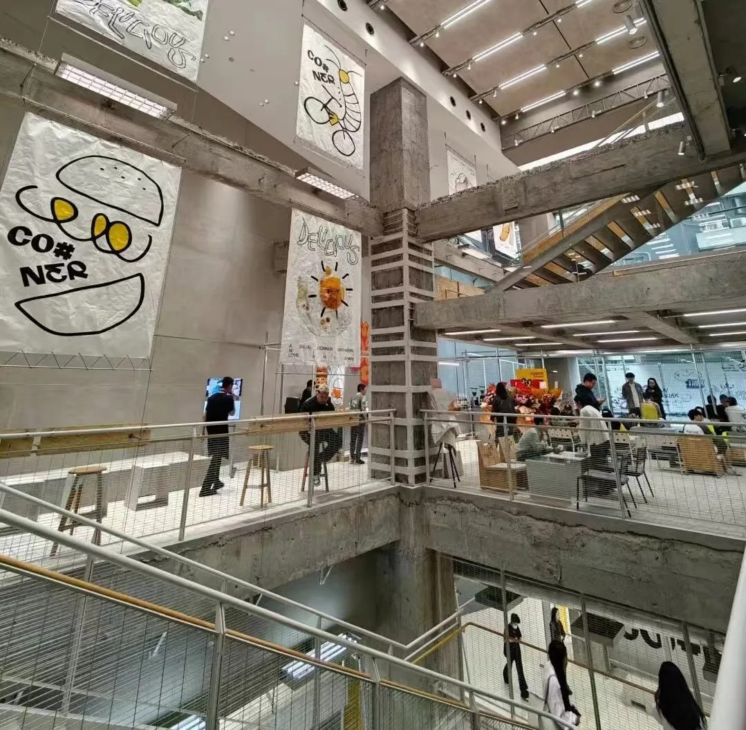 COSMO成都全新創(chuàng)意社區(qū)食堂成功開放,水泥工業(yè)風(fēng)加上暖色桌椅相結(jié)合,還有可愛的簡筆畫呼應(yīng),反差非常吸睛。干凈簡潔的包豪斯風(fēng)格高級感拉滿。用美食社交理念打造出青年的食堂,主打“碰頭吃飯,食為了玩”。