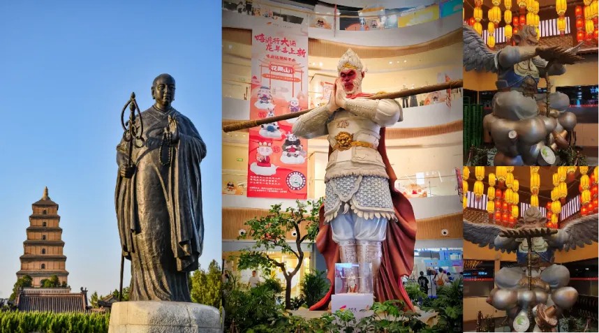 以西安大悅城為例,他深挖大唐、長安歷史文化底蘊(yùn),與在地城市地標(biāo)形成呼應(yīng),中庭悟空與大雁塔玄奘雕像隔街對望,并打造契合潮流時(shí)尚客群訴求的“勿空”美食街區(qū)與“不戒食巷”,街區(qū)內(nèi)的墻體上還有師徒四人取經(jīng)歸來的立體壁畫,讓原本只以美陳形式存在的孫悟空、豬八戒變成文化傳播的紐帶。