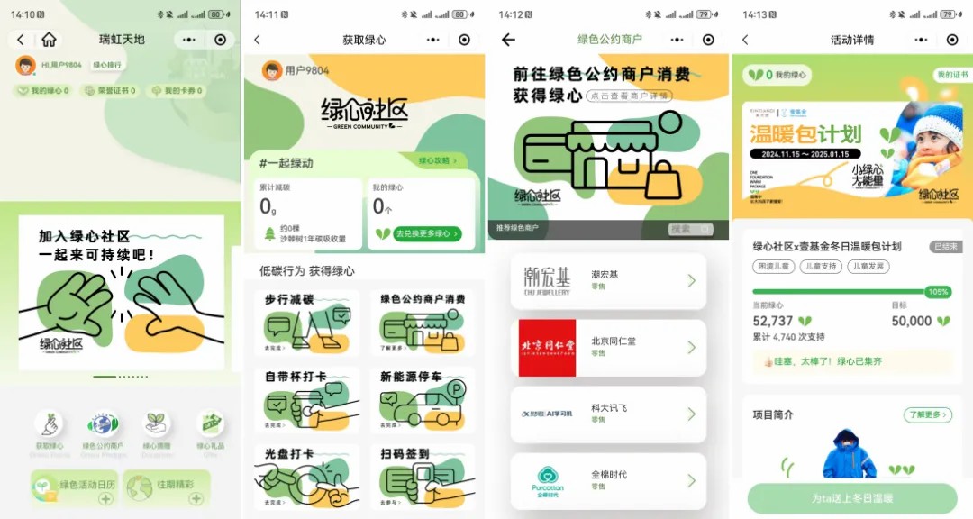 再比如,上海新天地開發(fā)上線了消費(fèi)者“綠心”會員碳賬戶,在線下結(jié)合綠色餐廳大賞活動(dòng),推廣有機(jī)低碳的餐飲經(jīng)營。“綠心社區(qū)”的上線為商業(yè)與消費(fèi)者之間搭建了一條綠色的通道,令可持續(xù)行為可積累、可觸達(dá)、可量化、可兌換,培養(yǎng)消費(fèi)者從意識、認(rèn)知到生活方式邁向綠色的轉(zhuǎn)變。